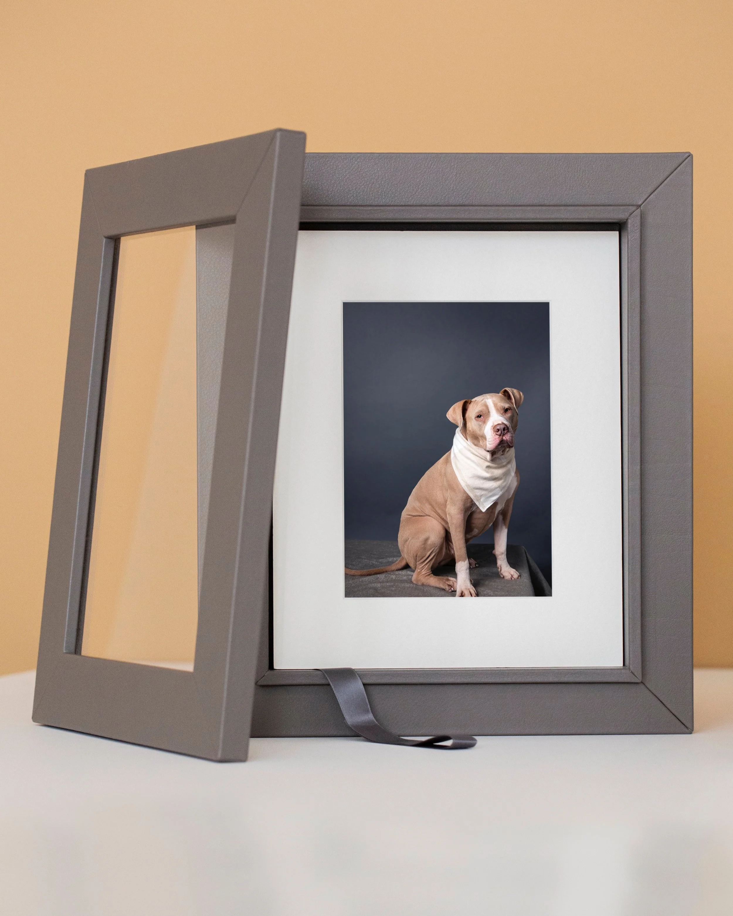 An heirloom album is the perfect way to enjoy your pet’s portraits every day. Luxurious pages and seamless panoramic spreads turn your session into a book of memories to treasure forever. With a wide variety of cover options and a timeless design, it’s no surprise this is one of the most loved products.